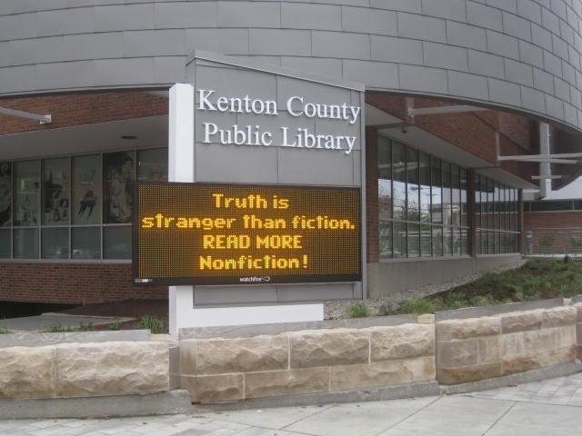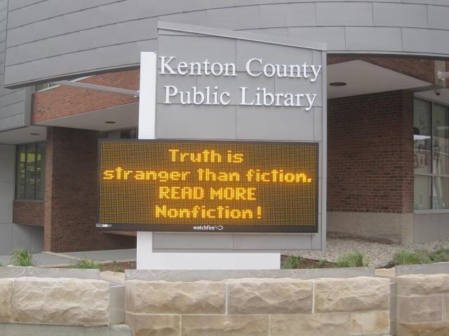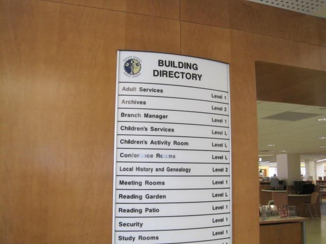 We were contracted to fabricate and install the signs for the Kenton County library in Covington, Ky. The package consisted of both interior and exterior signs. The interior consisted of three floors of wayfinding signage and directories as well as new cast bronze plaques. There were also signs for the parking lot and entrance signs for the building.
